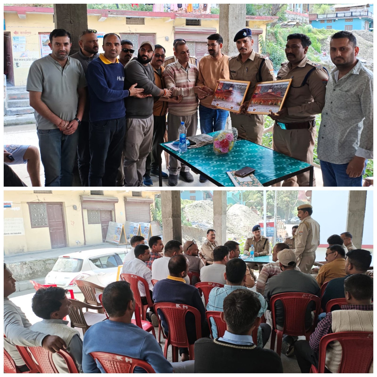 नौगांव uttarkashi,, नवनियुक्त चौकी इंचार्ज SI भूपेंद्र सिंह रावत ने चार्ज संभालने के बाद व्यापार मंडल और टैक्सी यूनियन पदाधिकारियों के साथ परिचायक बैठक आयोजित की। पदाधिकारियों ने चौकी इंचार्ज को पुष्प गुच्छ देते मोमेंटो देकर स्वागत किया। वहीं निवर्तमान चौकी इंचार्ज/प्रभारी थानाध्यक्ष पुरोला SI राजेश कुमार के कार्यकाल को सराहते मोमेंटो देकर भावविनी विदाई दी है। बैठक में बाहरी व्यक्तियों के सत्यापन, यातायात व्यवस्था में सुधार, अपराध नियंत्रण और चारधाम यात्रा से सफल संचालन पर विशेष जोर दिया गया है। दोनों संगठनों के पदाधिकारियों ने चौकी इंचार्ज को पूर्ण सहयोग के लिए आश्वस्त किया है। इस दौरान व्यापार मंडल अध्यक्ष जिला यमुनाघाटी कबूल सिंह पंवार, नगर अध्यक्ष विपिन रमोला, SI विक्रम तोमर, महामंत्री सुमित रावत, टैक्सी यूनियन बाबू अरविंद चौहान, अमृतराज असवाल अनिल कुकरेजा, मोहन आर्य सहित अन्य लोग रहे।