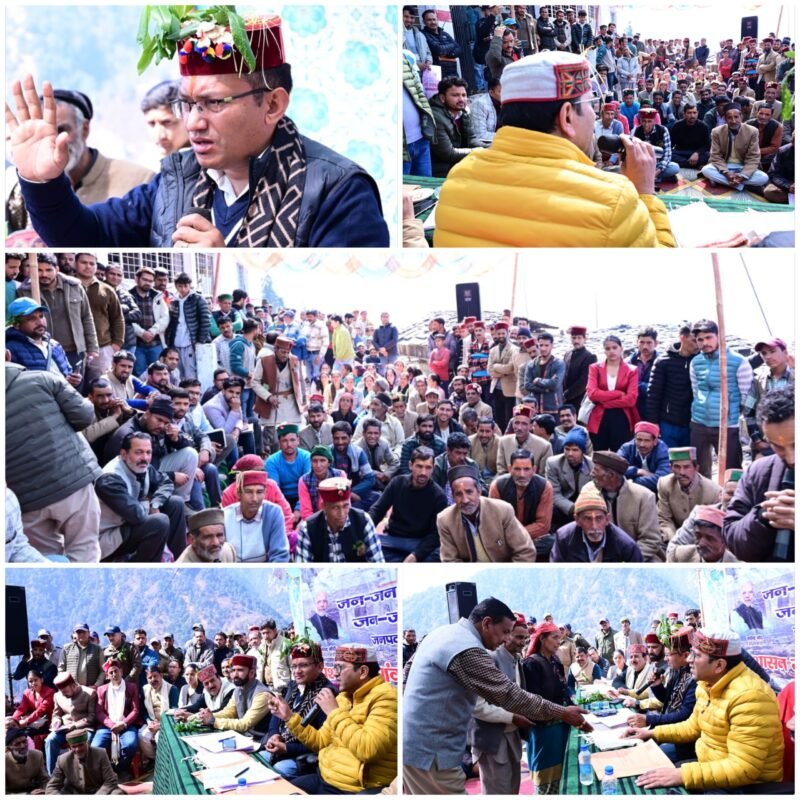 डिंगाड़ी/पुरोला uttarkashi,, जनपद में दो माह से संचालित जन-जन की सरकार,जन-जन के द्वार,प्रशासन चला गांव की ओर अभियान का शनिवार को समापन हो गया। समापन अवसर पर सर बड़ियार क्षेत्र के डिंगाड़ी गांव में क्षेत्रीय विधायक दुर्गेश्वर लाल की उपस्थिति में जिलाधिकारी प्रशांत आर्य की अध्यक्षता में शिविर आयोजित किया गया। करीब तीन किलोमीटर की खड़ी चढ़ाई तय कर जिलाधिकारी एवं विधायक गांव पहुंचे और ग्रामीणों की समस्याएं सुनीं। शिविर में कुल 16 समस्याएं एवं शिकायतें दर्ज की गईं, जिनमें से 13 का मौके पर ही निस्तारण किया गया। शिविर में विभिन्न विभागों के द्वारा स्टाल स्थापित कर विभागीय योजनाओं की जानकारी आमजन को दी गई।
